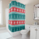 Merry Christmas illustration with Christmas tree and snowflakes decoration on red, white, blue and turquoise striped background