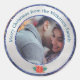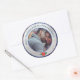 Merry Christmas SIlver & Blue Glitter Custom Photo Classic Round Sticker