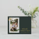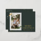 Merry Christmas Simple Elegant Photo Frame Modern Gold Foil Christmas Postcards features your favourite photo in a simple white frame accented with greenery and gold glitter on a green background with a "Merry Christmas" gold foil calligraphy script overlay. Personalise by editing the text in the text boxes provided. Designed by ©Evco Studio www.zazzle.com/store/evcostudio