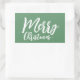 Merry Christmas Simple Girly White Script Green Rectangular Sticker