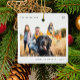 Simple minimalist typography Merry Christmas custom photo, family name, and year tree ornament.