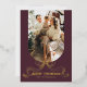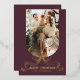 Merry Christmas Simple Modern Coquette Bow Photo Foil Holiday Card Foil Stamped Christmas Cards features a simple design with your favourite photo with the foil text overlay "Merry Christmas" in modern calligraphy script typography accented with a foil stamped bow on a dark cherry background. Personalised your names or custom text below and your custom message on the reverse. Perfect for family and friends to celebrate Christmas and the holidays. Designed by ©2025 Evco Studio www.zazzle.com/store/evcostudio