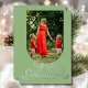 Merry Christmas Simple Modern Coquette Bow Photo Foil Holiday Card Foil Stamped Christmas Cards features a simple design with your favourite photo with the foil text overlay "Merry Christmas" in modern calligraphy script typography accented with a foil stamped bow on a green background. Personalised your names or custom text below and your custom message on the reverse. Perfect for family and friends to celebrate Christmas and the holidays. Designed by ©2025 Evco Studio www.zazzle.com/store/evcostudio