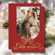 Merry Christmas Simple Modern Coquette Bow Photo Foil Holiday Card Foil Stamped Christmas Cards features a simple design with your favourite photo with the foil text overlay "Merry Christmas" in modern calligraphy script typography accented with a foil stamped bow on a brown background. Personalised your names or custom text below and your custom message on the reverse. Perfect for family and friends to celebrate Christmas and the holidays. Designed by ©2025 Evco Studio www.zazzle.com/store/evcostudio