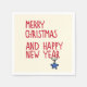 Merry Christmas Simple Modern Typography Christmas Paper Party Napkins features the text "Merry Christmas and Happy New Year" in modern red script typography on a cream background accented with a simple star decoration. Perfect for Christmas parties and celebrations. Designed by Evco Holidays www.zazzle.com/store/evcoholidays