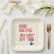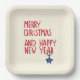 Merry Christmas Simple Modern Typography Christmas Paper Party Plates features the text "Merry Christmas and Happy New Year" in modern red script typography on a cream background accented with a simple star decoration. Perfect for Christmas parties and celebrations. Designed by Evco Holidays www.zazzle.com/store/evcoholidays
