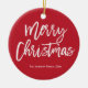 Merry Christmas simple red and white tree ornament with changeable text - you can change family name and year.
