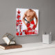 Merry Christmas SlipperyJoe red white silver gift Square Wall Clock