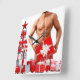 Merry Christmas SlipperyJoe red white silver gift boxes bows muscular male chest shirtless man holiday ornaments artistic tree festive background six-pack stomach gay pride gifts LGBTQIA bold unique holiday cheer various wrapped presents