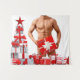 Merry Christmas SlipperyJoe red white silver gift boxes bows muscular male chest shirtless man holiday ornaments artistic tree festive background six-pack stomach gay pride gifts LGBTQIA bold unique holiday cheer various wrapped presents