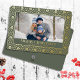 elegant real gold foil style for holidays and Christmas. This simple Holiday Christmas Photo Card features a full bleed with a white border. A trendy and Modern rustic Merry Christmas greeting on the front side fits 1 Photo. This design features a Christmas holiday green snowflake winter, family photo 1 one picture, photo Christmas cards, classic traditional winter design, elegant simple minimalist minimal, trendy stylish calligraphy script, whimsical typography font text, merry Christmas quote saying simple, golden and green simple flourish, Christmas holiday photo greeting cards