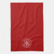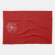 This kitchen towel features a white snowflake on a deep red background with a customizable greeting, currently saying "Merry Christmas". Keep as is or edit the greeting right on the product page to make it your own.