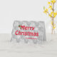 White snowflakes on gradient silver grey background with red Merry Christmas text.