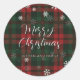 Merry Christmas Snowflakes Plaid Script Custom Classic Round Sticker