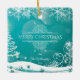 A pretty design of a Christmas Tree adorned with decorations. Vines, white flowers and snowflakes surround the holiday greeting. The centre is the traditional Merry Christmas message. All set on a beautiful aqua, cyan and teal gradient ombre background.