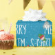 White Merry Christmas font with snowman and pine tree with hat on aqua background with snowflakes.