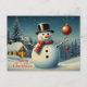 Merry Christmas Snowman and Winter Landscape Holiday Postcard