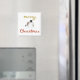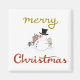 'Merry Christmas' in faux gold colour and red script with illustration of a snowman centre.