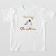 'Merry Christmas' in faux gold colour and red script with illustration of a snowman centre.