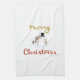 'Merry Christmas' in faux gold colour and red script with illustration of a snowman centre.