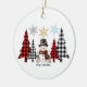 Merry Christmas Snowman Plaid Christmas Tree Ceramic Ornament.