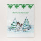 Merry Christmas! Snowman with Cat and Puppy Jigsaw Puzzle