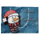 A beautiful little snowman wearing white and red knitted clothes on a blue paper . Perfect to wish merry Christmas to the little ones.