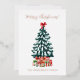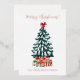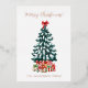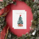 Send warm holiday wishes with this beautifully designed foil Christmas card featuring a classic snow-covered Christmas tree decorated with a red bow and surrounded by festive wrapped gifts. Perfect for spreading joy and cheer this holiday season, this Christmas card combines watercolor artistry with luxurious rose gold foil. Personalize it with a custom greeting at the top and a family name at the bottom.