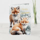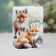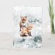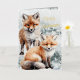 Merry Christmas Snowy Winter Red Fox Cubs Gold Foil Holiday Card
