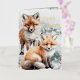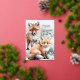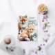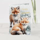 A holiday card featuring watercolour-painted red fox cubs in beautiful detail, in a wintery snowy scene with Merry Christmas in a gold foil script.