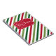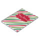 Merry Christmas illustration with text and snowflakes design on red, white and green striped background