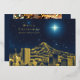 Merry Christmas card featuring the Portland, Oregon cityscape along with a beautiful Christmas star. Real foil on the front. Unique and modern look with blue and gold colours. Add your desired photo to the back (or keep what is shown). Customise the back with a personal greeting. Keep the text on the front or change. Use the template to create your own Merry Christmas Star photo foil card.