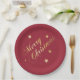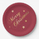 Merry Christmas Stars Wine Red Gold Napkins Paper Plate