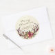 The sticker is made on wonderful paper and had no problem sticking to the bag that I purchased to put it on. I wanted to find a design that would be cute for the bride and groom and this one fit the bill as it has cute "bees" buzzing around and the wedding was taking place in a town called "Bee Cave". The packaging was great and protected the stickers. The website is easy to navigate and there are so many color choices. I had no problem finding a color that the bride was using on everything else selected. The design was adorable and there were many to choose from. You can make the figure as larger or smaller and you can place the photo and writting whereever you want to in the sticker. The printing is fabulous..better than expected.