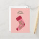 Merry Christmas Stocking PostCard with a cute pink sock.