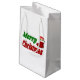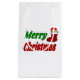 Gift bags with Merry Christmas in 3D green and red text and a Christmas stocking. Gift bag is available in multiple sizes.