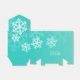 Stylish and modern festive pattern featuring a cyan background and elegant, white snowflakes and Merry Christmas wishes. Easily personalizable with your family name. The clean, geometric snowflake design brings a touch of winter charm, adding sophistication and a festive flair. Perfect for wrapping gifts in a memorable and eye-catching way, filling with christmas treats during your modern style Christmas party. Excellent for cookie exchange. This design seamlessly blend modern aesthetics with holiday spirit, making it an ideal choice for elegant holiday celebration.