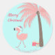 Merry Christmas - Sweet Tropical Santa Flamingo Classic Round Sticker