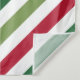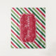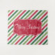 Merry Christmas illustration with text and snowflakes design on red, white and green striped background