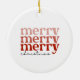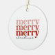 This festive tree ornament has the text Merry, Merry, Merry in shades of pink and red as well as the text Christmas in black. This classic and retro style ornament adds a great touch to your holiday home decor. It also makes a cute Christmas gift! (Background white colour may be changed per your preference -- just go into the personalisation area.)