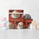 A cup of hot chocolate topped with whipped cream sits on a saucer, accompanied by the words 'Merry Christmas' embroidered beneath on a warm, red fleece blanket