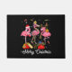 Merry Christmas Three Flamingo With Santa Hat Doormat