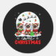 Merry Christmas Three Santa Elf Reindeer Siamese C Classic Round Sticker