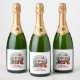 Merry Christmas Three Santa Elf Reindeer Siamese C Sparkling Wine Label