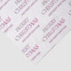 Tissue paper shown in a White background with Merry Christmas and a Happy New Year printed all over in Pink tones.