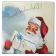 This design features a vintage illustration of Santa Claus wearing a traditional red-and-white costume. He has rosy red cheeks and a long white beard. Santa is holding a wrapped Christmas present, which has "Greetings" written on the tag. A leather belt is wrapped around Santa's large waist. He is clearly very happy to be celebrating the festive season. At the top of the design is the text "Merry Christmas to All". It is a beautiful design that will bring back memories of many happy Christmases for adults or help to create new ones for young children.
