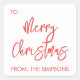 Merry Christmas To From Script Modern Minimalistic Square Sticker