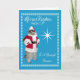 Wish your wonderful grandson a Merry Christmas with an adorable racoon dressed as Santa Claus holding on to his belt next to a pretty white star. Background is a light blue with a white snowflake border with white fancy text.