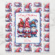 Cute watercolor whimsical winter gnomes in red and blue Christmas wine label.