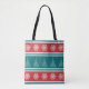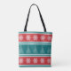 Merry Christmas illustration with Christmas tree and snowflakes decoration on red, white, blue and turquoise striped background